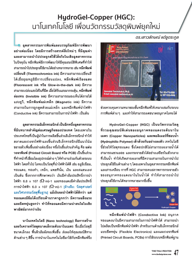 | HydroGel-Copper (HGC): นาโนเทคโนโลยี เพื่อนวัตกรรมวัสดุพิมพ์ยุคใหม่